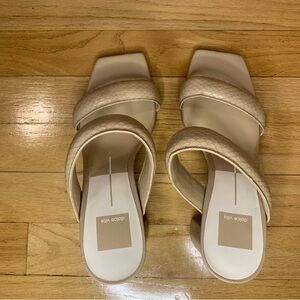 New Dolce Vita heels. There is just a tiny mark on one of the front straps as well as some minor creasing on the fronts from storage. Please see photos. They do not come with original box.
