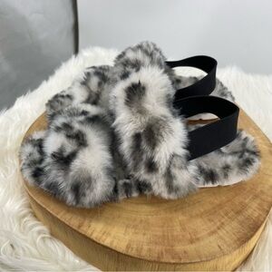 Dolce Vita Pochy Faux Fur Slingback Slipper, B/W Spotted Faux Fur 7