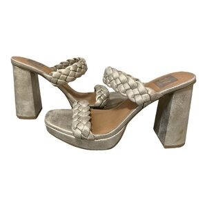 Dolce Vita Presley Heeled Metallic Braided Slide Sandals Size 9