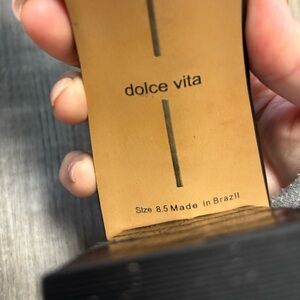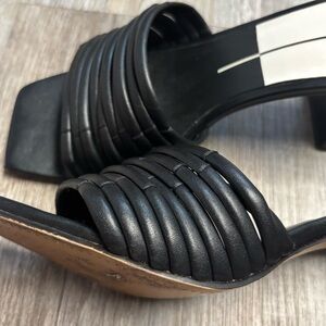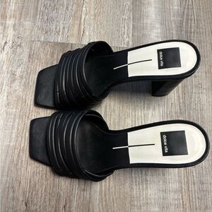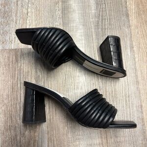Gently pre worn Dolce Vita black mule slides with animal skin look on heels. Square toe, modern, trendy.