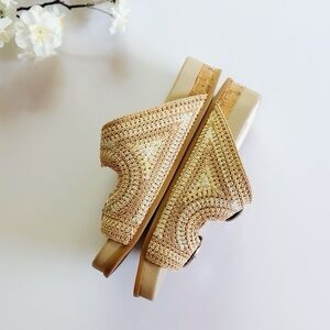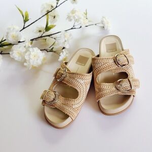 Dolce Vita Ralli Natural Multi Crochet Knit Buckle Slide Sandals