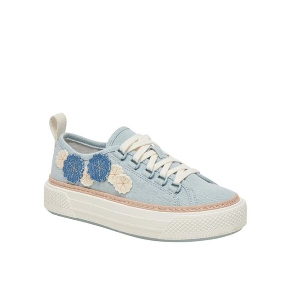 Elevate your style with these Dolce Vita Robbin Sneakers, featuring light blue denim and 3D flower embellishments. Perfect for casual outings.