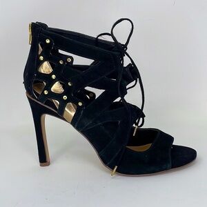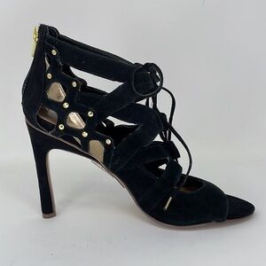 Dolce Vita Shoes Pumps Strappy Caged Heels Black Gold Studs Lace Up Suede Size 9