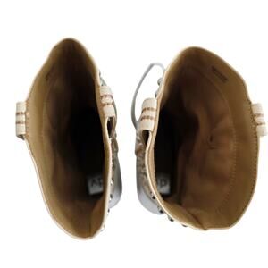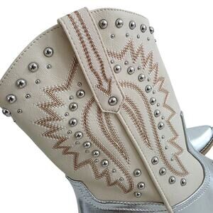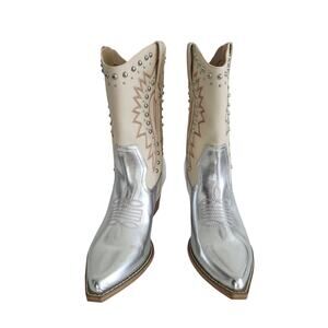 Dolce Vita Silver & Cream Beige Pointy Toe Studded Western Ankle Boots Size 8.5
