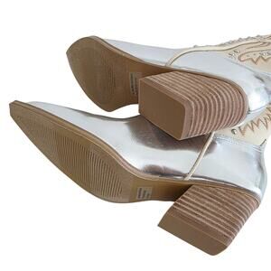 Dolce Vita Silver & Cream Beige Pointy Toe Studded Western Ankle Boots Size 8.5