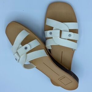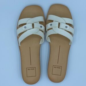 With a unique interwoven silhouette, checks all the boxes for an on-trend essential. A modern tricolor mix of bands is edged up by the addition of metallic studs— a cool twist on the classic slide.