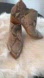 Step out in style with these chic snakeskin ankle boots. Neutral taupe/bone color with 2” stacked heel. Overall western look with pull tab in back. Excellent used condition. One small mark on back of right heel.