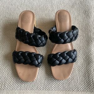 Dolce Vita Stacey Black Braided Slip On Block Wooden Heel Sandal Size 8.5