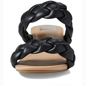 Dolce Vita Stacey Faux Leather Black Two Braided Straps Slip On Wooden Block Heel Sandal