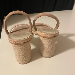 These neutral heels are so cute and comfortable with a stable base. They have a suede print.