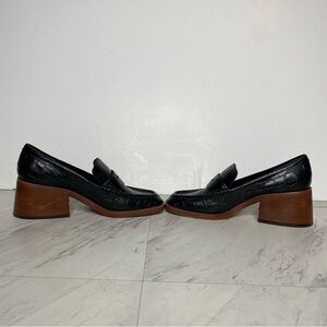 Dolce Vita Talie Black Crocodile Leather Heeled Loafers 7