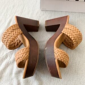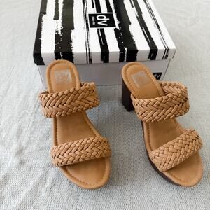 Dolce Vita Tan Braided Two Strap Wooden Heel Hilda Platform Sandal