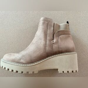 Step out in style with these chic taupe suede ankle boots. Perfect for any occasion, they offer both comfort and traction. Appx 2 inch rubber soled bottom. New without tags . Size 8