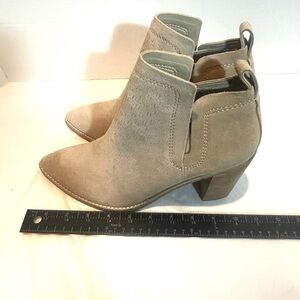 Dolce Vita Taupe Suede Ankle Boots with Pointed Toe and Block Heel