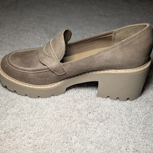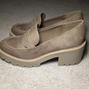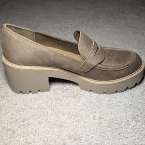 Dolce Vita Temecula Tan Faux Suede Platform Classic Chunky Heel Loafers Size 9.5