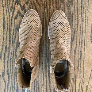 Geometric perforations bring a fresh new look to the Tommi bootie — pair with fishnets for a cool, grid-on-grid effect