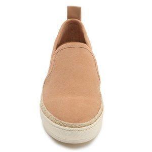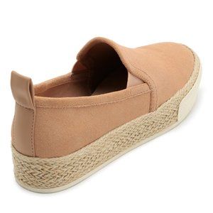 Shaped with rich suede, this slip-on features an espadrille platform to provide natural texture and a beachy appearance.