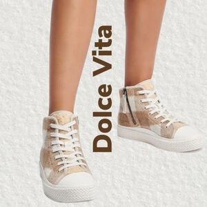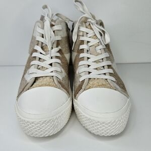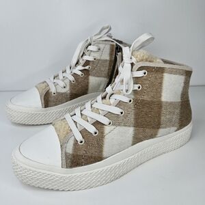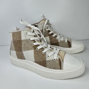 Dolce Vita Veola Plaid Cream-Tan Leather Fabric Hi-Top Casual Sneakers Sz 10