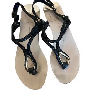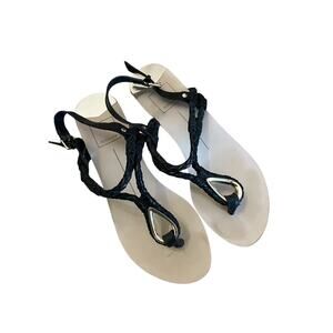 Dolce Vita Black and Gold Braided Leather Gladiator Sandals 7