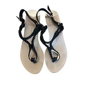 Dolce Vita Womens Black and Gold Braided Leather Gladiator Sandals 7