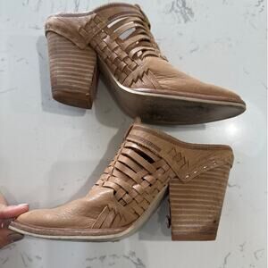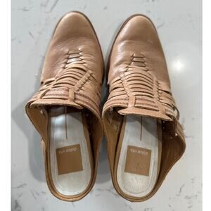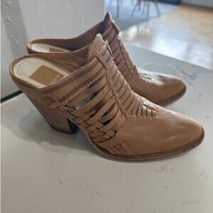 Dolce Vita Women's Carmel Tan The Heeley Leather Block Heel Mule, Size 7.5, GUC