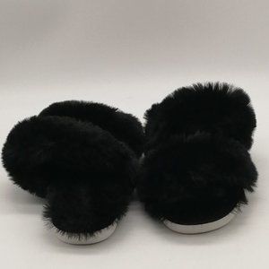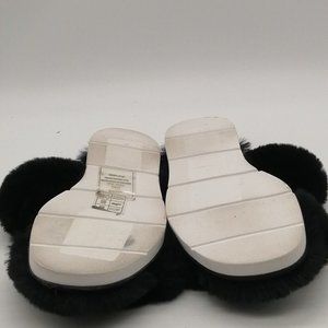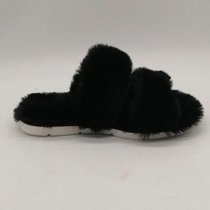 Dolce Vita Womens Double Strap Slide Slipper Black Faux Fur White Flat Heel 5