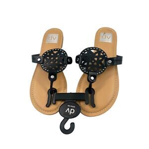 Dolce Vita Womens Gotie Laser Cut Studded Thong Flat Sandals Black Sz 6.5 NEW