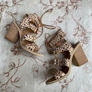 Dolce Vita Women's Shoes Leopard Print Calf Hair Luci Sandals Size 9