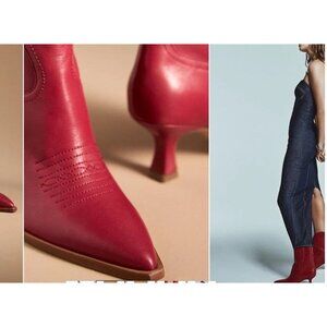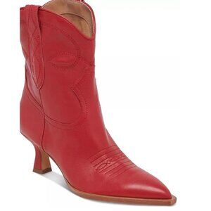 The Dolce Vita Women's Size 8.5 Angel Western Cowboy Boots Booties in Bright Red are stylish ankle boots with a pointed toe and a mid-height block heel. Made of leather, these boots are perfect for casual occasions and feature a Western theme. The bright red color adds a pop of fun to your outfit, making them ideal for the winter, fall, and spring seasons. With their angel character and Western style, these boots from Dolce Vita are a fashionable choice for any woman's wardrobe.