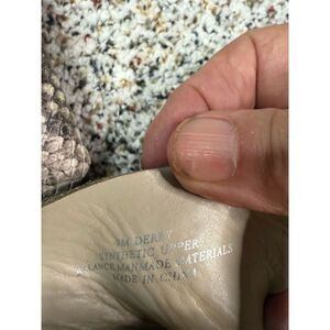 Elevate your summer style with these Dolce Vita slip-on sandals, perfect for casual outings. The multicolor snakeprint design adds a bold touch to any outfit, while the synthetic upper material ensures durability and easy maintenance. Designed for women who love effortless fashion, these sandals feature a convenient slip-on closure, making them ideal for those on the go. Whether you're heading to a beach party or a casual brunch, these sandals are your go-to choice. Please be aware that this item is pre-owned, offering a unique charm and character.