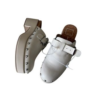 Dolce Vita Yevan Platform Studded Leather Clogs Mule Ivory Cream Latte NEW