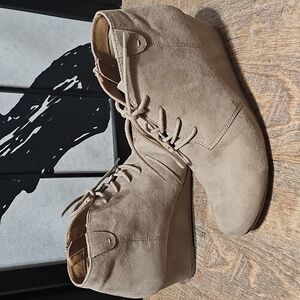 Dolce Vita Zippered Suede Wedge Ankle Boots Tan Size 9