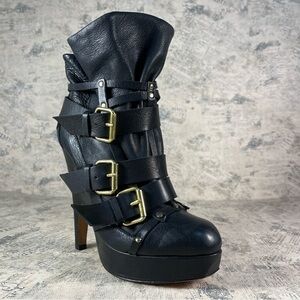 Dolce Vita bondage triple buckles platform black leather ankle boots