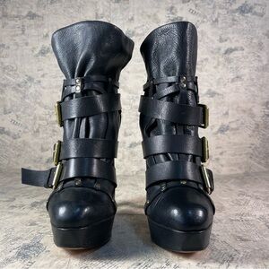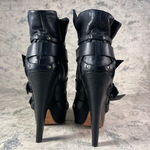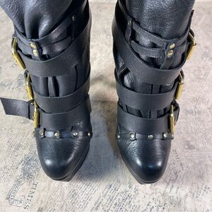 Dolce Vita bondage triple buckles and studs platform black leather ankle boots