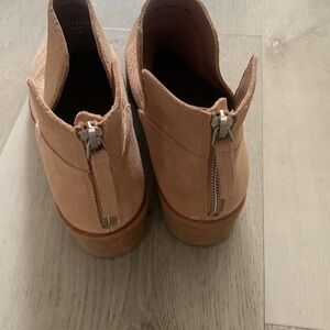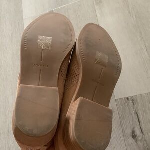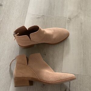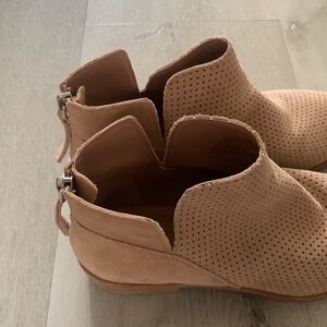 Dolce Vita laser cut booties back zipper size 8.5 camel tan suede leather