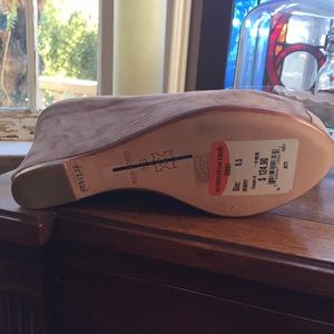 Never got a chance to wear these beauties...Dolce Vita suede booties: Jett" color is "Desert". Nice leather "x" details on the back. Heels are approximately 4.25" high. (Will be modeled by someone - photo to be posted later today)
