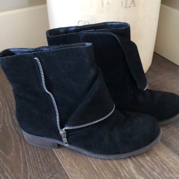 Dolce Vita- side zip accent black suede pull on booties size 8
