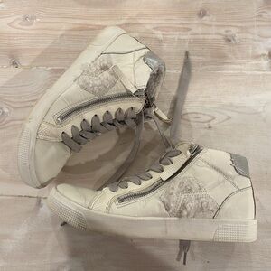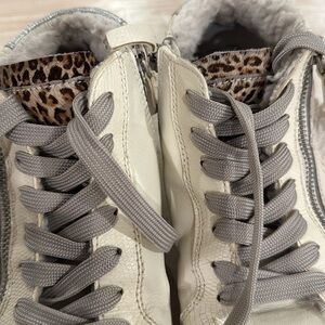 Dolce Vita sneakers with leopards printed calf hair tongues and faux fur accents. Fit true to size. Preloved with normal wear- still lots of wear left!