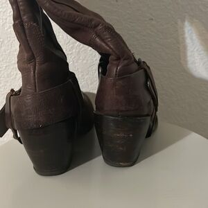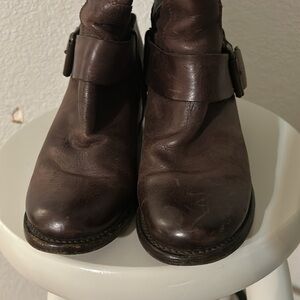 In good used condition, with some wear on the soles, but much life left. Straps with buckles.