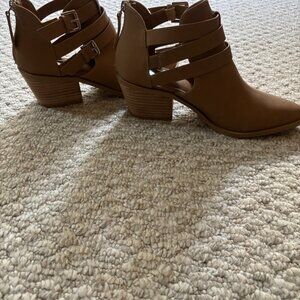 Dolce Vita tan short boots size 7 1/2 NWOT. Never worn other than trying them on at the store. Open sides, buckles On the sides for style and back zipper.