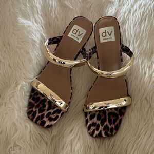 Step out in style with these Dolce Vita heels, featuring a striking gold and leopard print design. Perfect for adding a touch of glamour to any outfit.