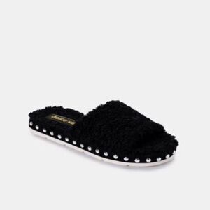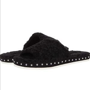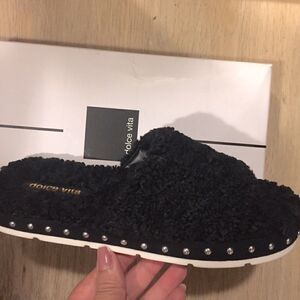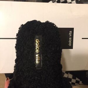 Dolce Vita New Black Fuzzy Slides Studded 9slip on