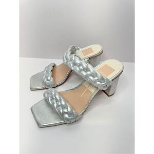 Dolce Vita Sandals Womens Size 6 Silver Slip On Braided Square Toe Heels