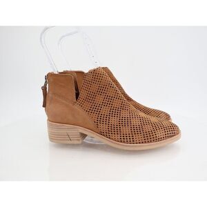 Dolce Vita Tommi Ankle Bootie Size 7.5 Brown Leather Perforated Zip Up Block