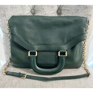 Dolce and Gabanna Fold Over Pebbled Leather Dark Green