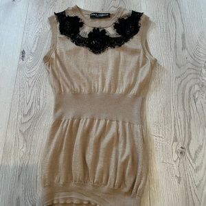 Dolce and Gabbana Beige and Black Lace Cashmere Top Size 40 IT/ 4 US