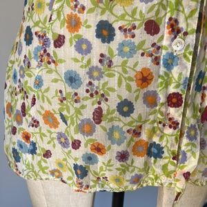 Vintage Dolce and Gabbana designer sleeveless colorful floral blouse. Silver lurex detail. Can be worn as a sleeves top or open tied in middle. Authentic piece