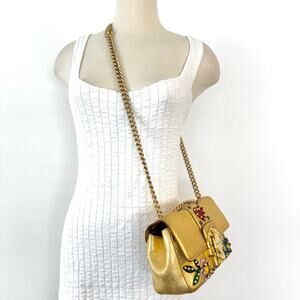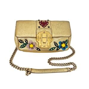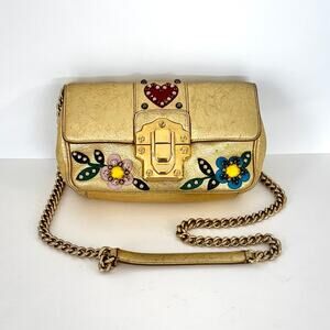 Dolce and Gabbana Lucia Metallic Gold Calfskin Embellished Shoulder Bag