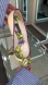 White with purple floral pattern, coated canvas, pointed toe, stiletto heel