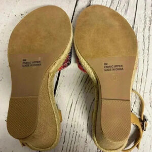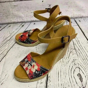 Dolce by mojomoxy wedge sandal women’s shoe size 9M. Blue, white, and red flower design. Preowned